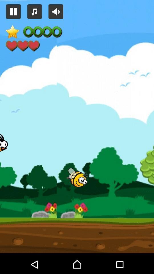 Vietnamese: You need to feed the bees to eat flowers to earn points and maintain life (5 hearts on the left corner of the screen). At the same time, do not collide with birds and flowers.